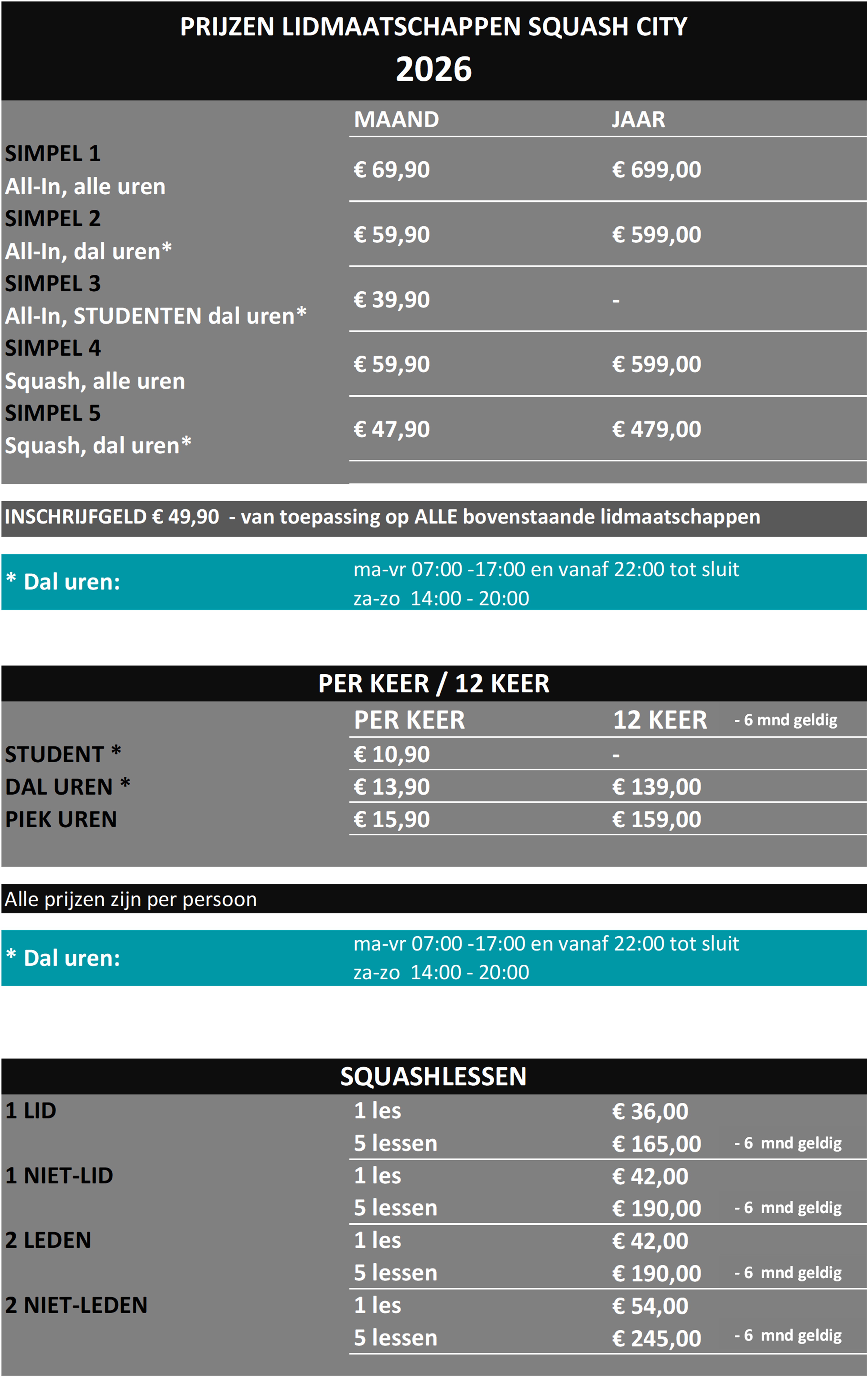 Bij Squash City hanteren we een opzegtermijn van één maand voor maandlidmaatschappen, zodat je flexibel blijft! Betaal je liever een jaar vooruit? Dan krijg je maar liefst 2 maanden korting.